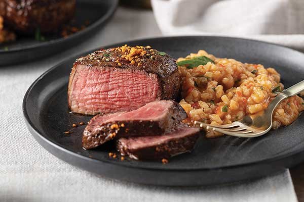 Suya-Dusted Filet Mignon with "Red Rice" Risotto