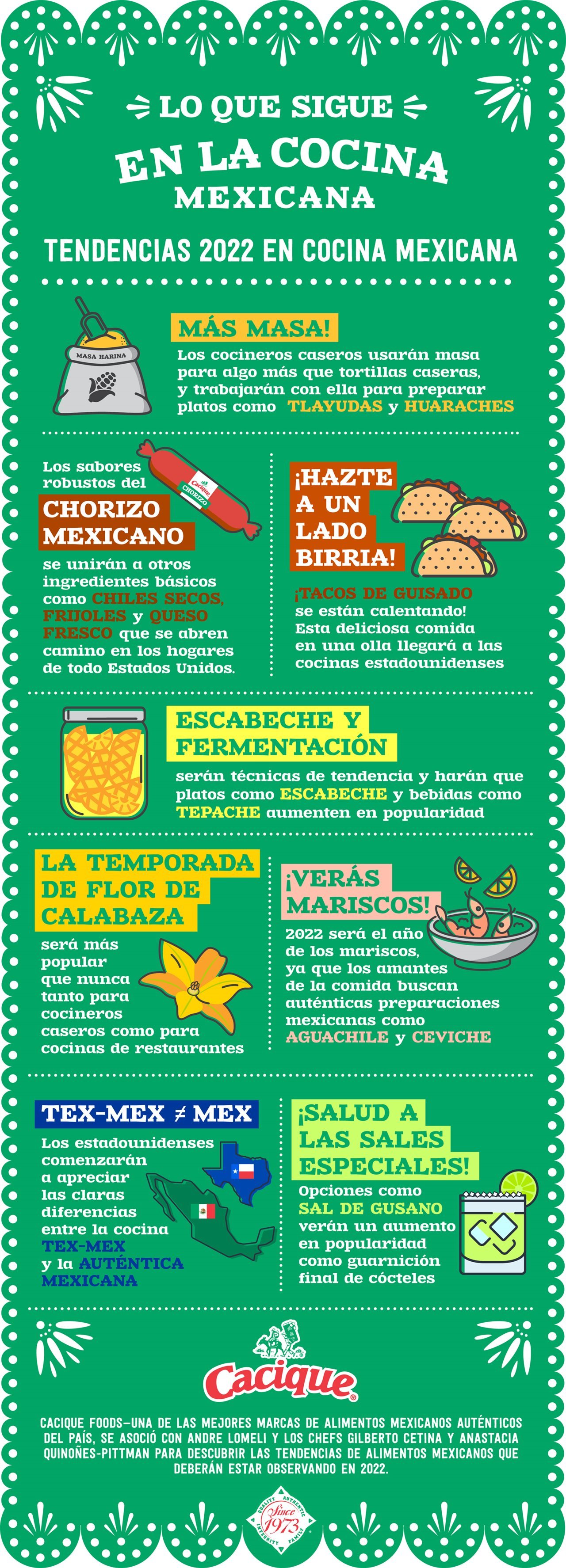 (BPT) - Cacique – una de las marcas en Estados Unidos de los mejores alimentos auténticos Hispanos – enaltecerá a la cocina Mexicana de los Estados Unidos al unirse con autoridades culinarias para anunciar Lo Que Viene en la Cocina Mexicana, tanto como sus predicciones para las tendencias más populares que veremos en la cocina en todo el país durante el año venidero. Para desarrollar las proyecciones este año, Cacique unió fuerzas con el Chef Gilberto Cetina, la Chef Anastacia Quiñones-Pittman y Andre Lomeli quienes compartieron de manera individual sus perspectivas únicas de la cocina Mexicana en Estados Unidos.