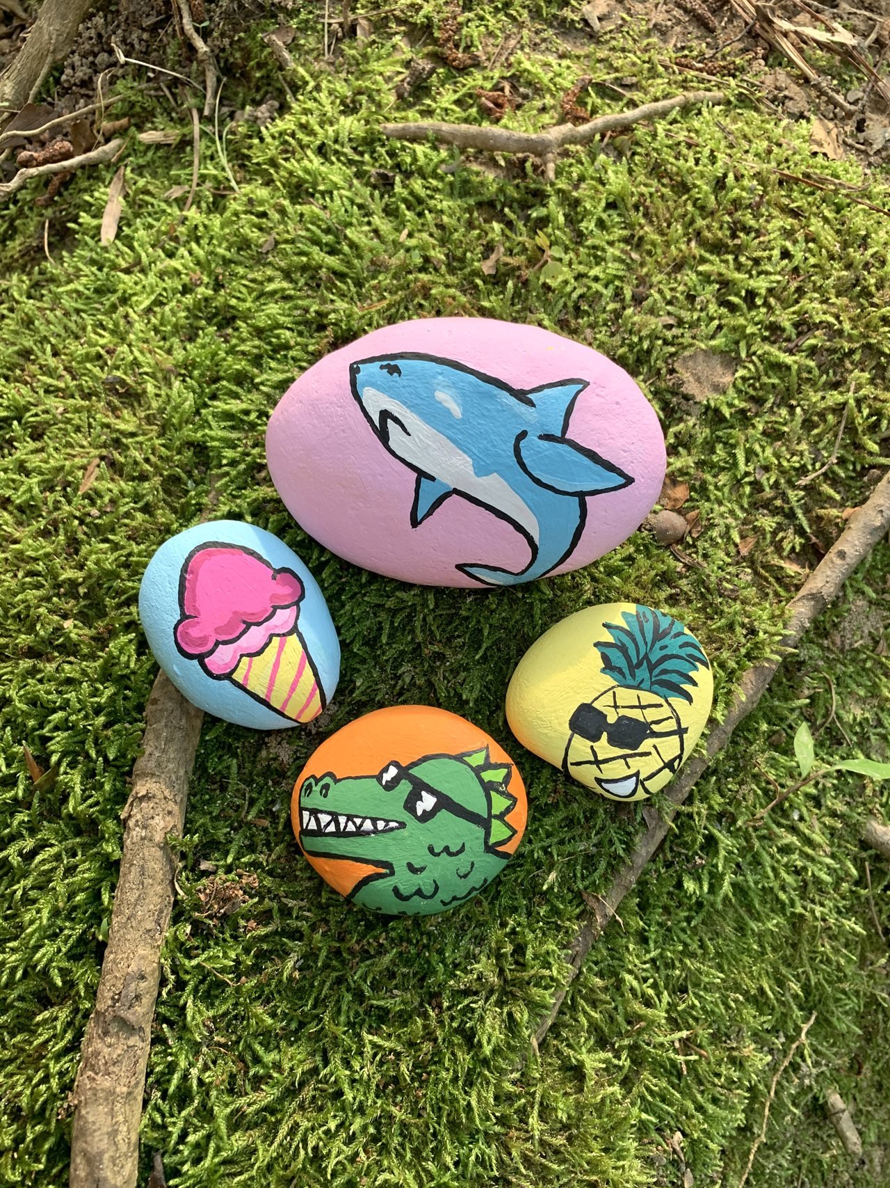 Remember your own childhood and unleash your kids’ inner artist by setting up an outdoor art studio exclusively for the painting of rocks. All you need are smooth stones in various sizes, paint brushes, acrylic paint or paint markers, a paper plate or palette for mixing paint, paper, a pencil and/or fine-tipped permanent markers and a work surface that can accommodate a mess. Start by brainstorming designs, perhaps seeking inspiration through books, magazines, household objects, clothing or the Oshkosh website. You may wish to sketch out designs on paper to ensure they fit onto your rocks of choice. During painting, go easy on the application and let each coat dry for 2-3 minutes before resuming. Use the fine-tipped markers to add final details. Camp counselor hack: For best color coverage start with one or two coats of white paint, and consider setting up paint-by-number designs for younger artists.