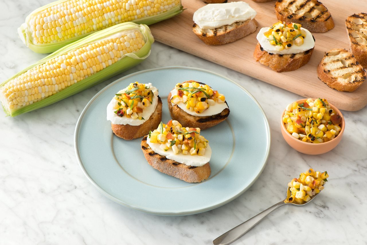 Corn and Peach Bruschetta Toasts