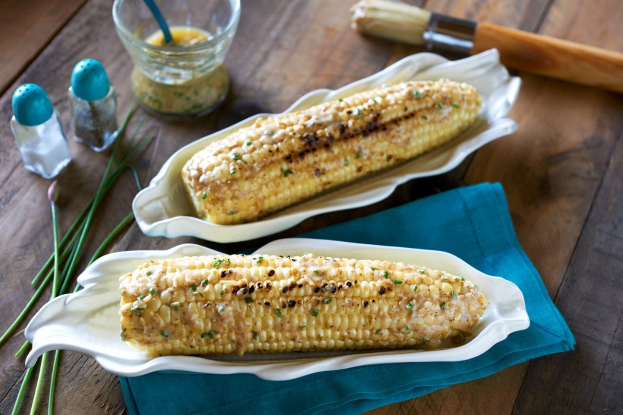 Tried and true, this is the perfect grilled corn on the cob recipe to enjoy all summer long. It’s as simple as wrapping Dandy sweet corn in foil, grilling for 10 minutes, and brushing on your favorite compound butter, mayo, chives, lemon zest, cheese and spices. You’ll never make grilled corn any other way again!