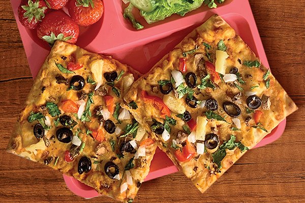 For a lunchtime solution with easy prep and quick cleanup, a Hummus Flatbread Pizza takes just 10-15 minutes to make. Made with easy-to-find ingredients you can keep on-hand like pizza sauce and hummus, simply top with sweet favorites like pineapple for a fun boost for long days of learning.