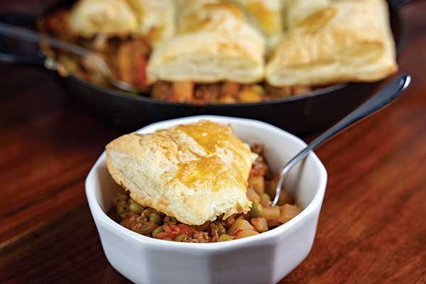 A hearty home-cooked meal loaded with flavor and sure to fill you with cheer, Irish Beef and Beer Pot Pie is made piping hot to warm up any St. Patrick’s Day party. Full of hashbrowns, carrots, peas and beef, it’s a twist on tradition served with puff pastry topping the tasty stew. A cup of your favorite stout beer, of course, will come in handy for deglazing the skillet to ensure you enjoy every bit of beefy flavor.