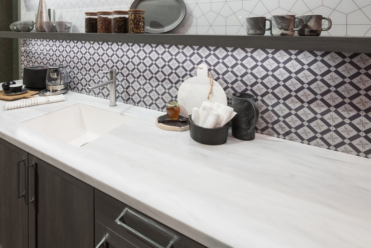 The look of marble continues to reign supreme in kitchens and baths, and to achieve its beauty and drama, homeowners traditionally would need to turn to natural materials like quartz and stone. With the introduction of the Wilsonart® Solid Surface Collection, the look of authentic marble can be achieved in an ultra-durable acrylic surface, making design applications virtually limitless for the kitchen, bath and beyond.