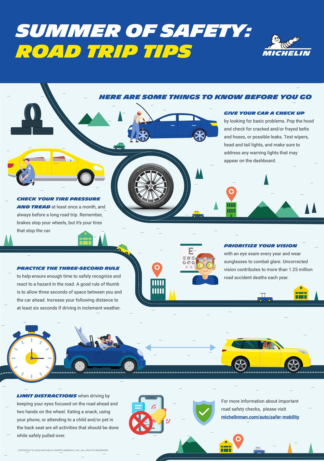 (BPT) - Summer is one of the busiest times on the road as many people head out on vacation and take long-distance road trips with friends, family and loved ones. To help Americans get safely from point A to point B this summer, Michelin and Lenscrafters encourage all drivers to partake in critical safety checks before heading out on summer adventures.